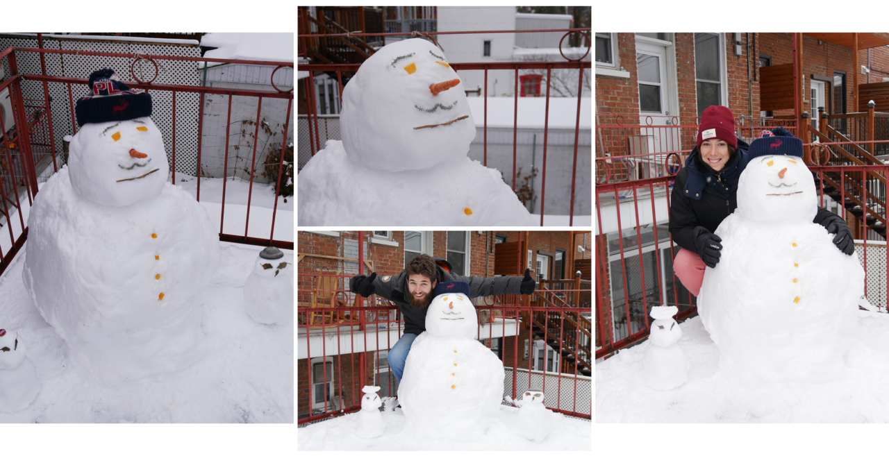 On vous parlait dans le post précédent de l’hiver et de son arrivée à Montréal… en voilà la preuve définitive! ☃ Un nouveau voisin a fait son arrivée sur notre terrasse: Bob, le sympathique bonhomme de neige à moustache.